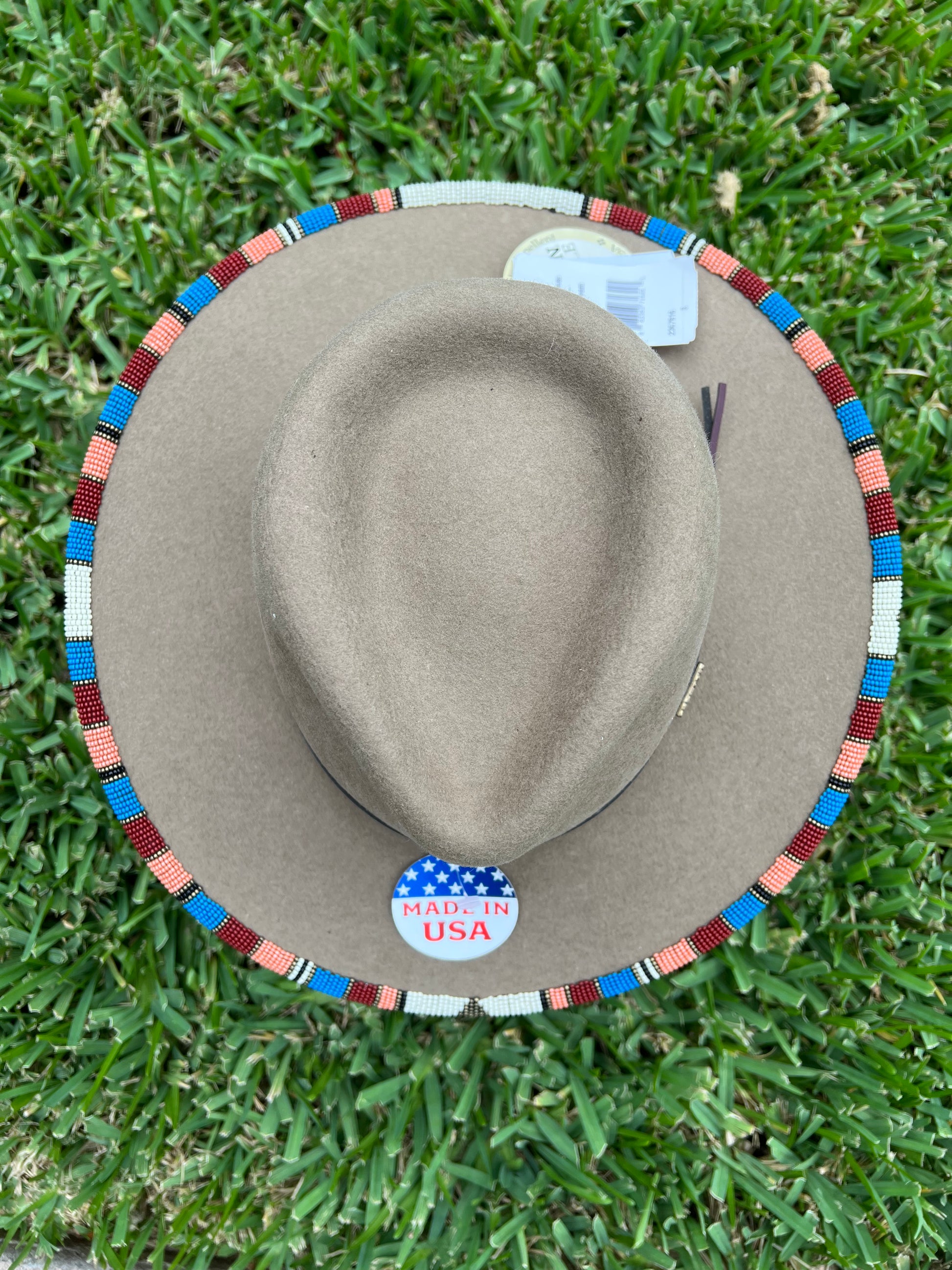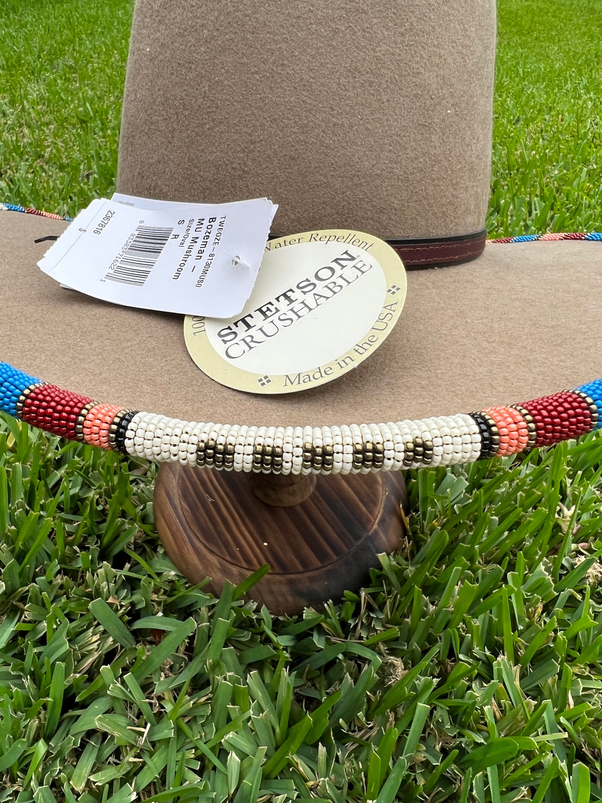 Stetson crushable Bozeman outdoor hat Hand beaded with Size 11 seed beads.