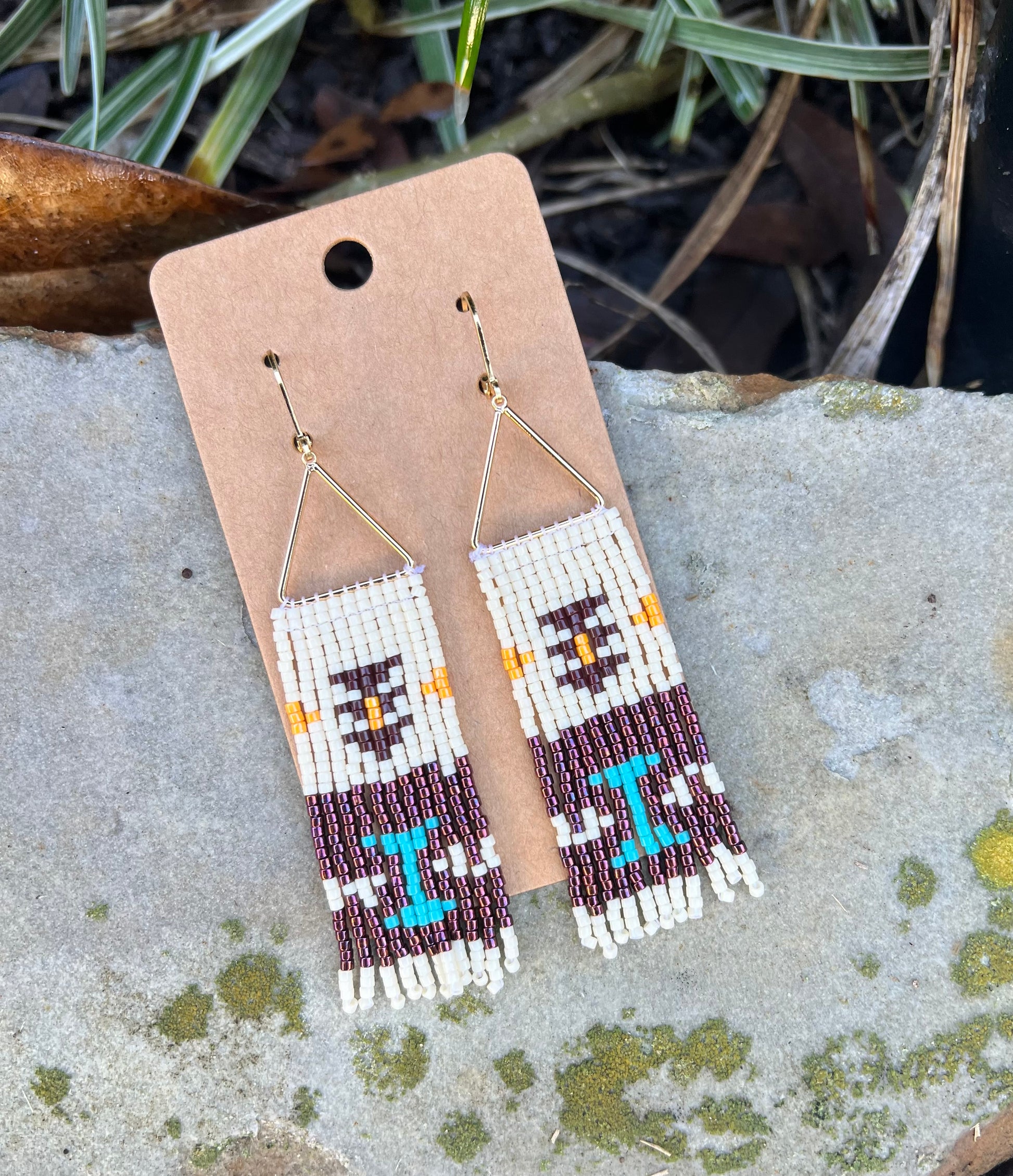 Hand beaded Miyuki seed beads earrings. Made to order 7-10 days 2” long
